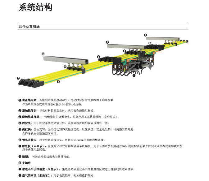 Conductix-Wampfler的0812系列组合式滑触线作为移动供电的标准产品已广泛的应用于各类工业环境产品部件设计灵活;作为标准品用于给桥吊、门式起重机和行车起重机提供动力电源,但也可广泛用于各种其他设施,例如游乐设备和轨道交通系统。35年来它一直是这些应用中指定、可靠和广受认可的产品。