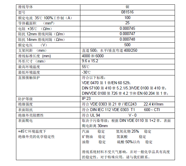Conductix-Wampfler的0815系列单极组合式滑触线又绝缘外壳和内部导体组成,主要用于室内单轨小车和滑环等设备的移动供电或通信。滑触线间距可安装为12mm或14mm;在常用的180铝轨上,最多可安装10-12极;在240铝轨上,最多可以安装16极。